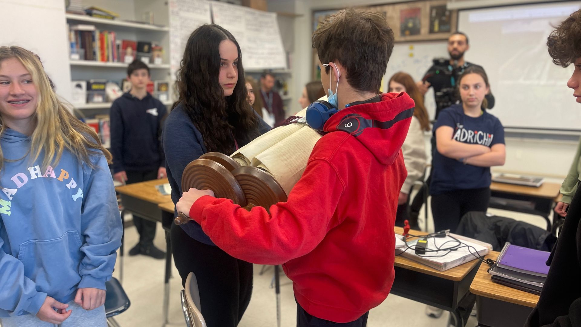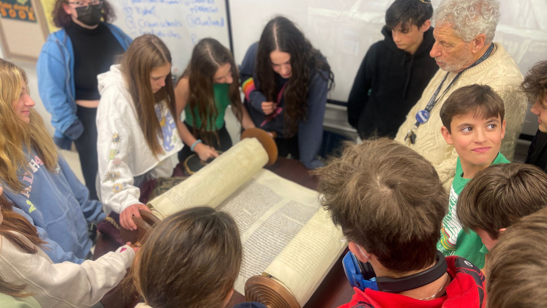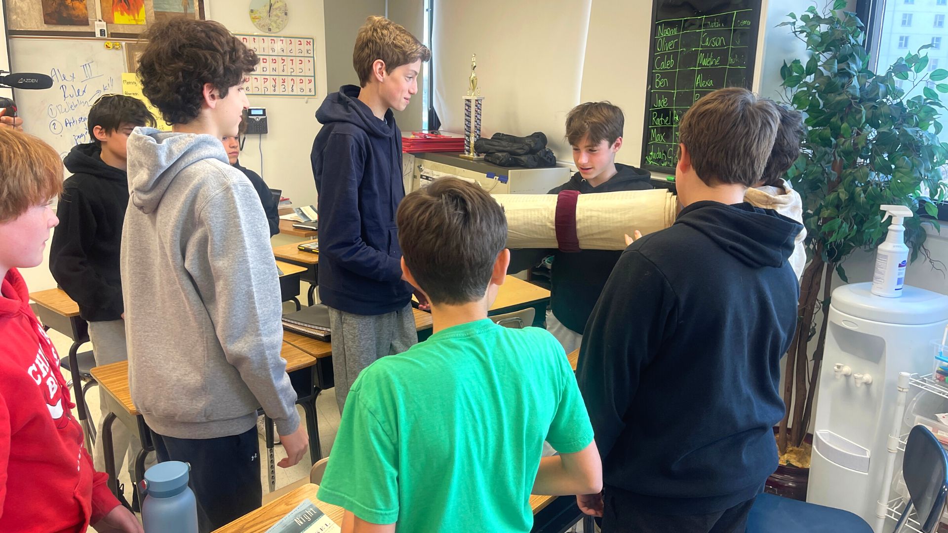 On November 11, 2022, something extraordinary happened. I was boxed up and shipped to Bernard Zell Anshe Emet Day School in Chicago. In the months since I arrived, the 8th grade students have served as my guardian angels and the other scrolls at the school have provided some comfort and solace for me.